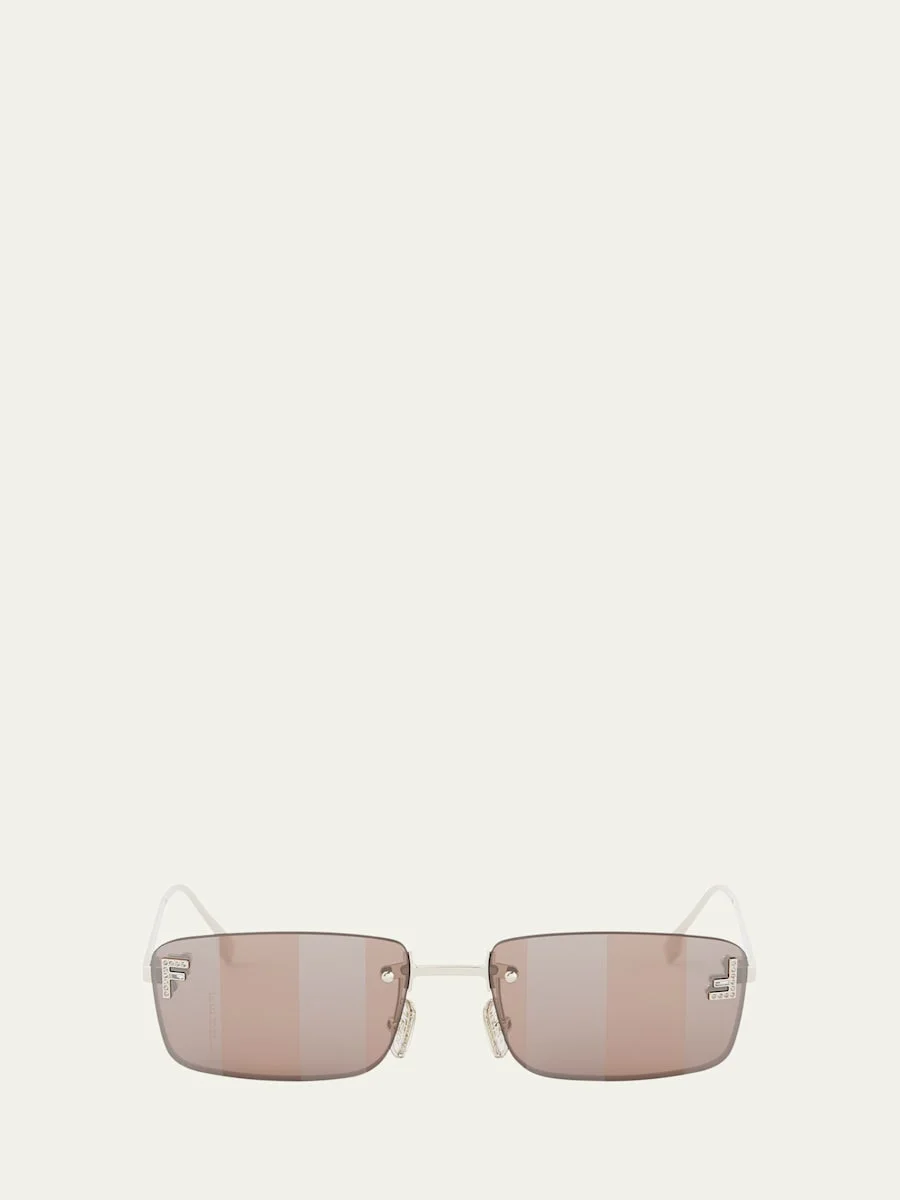 Fendi "Fendi First" rectangle sunglasses Features "F” logos on the lenses enriched with crystals Eye/bridge/temple (in mm): 54-16-135 Solid lenses Adjustable nose pads Thin, tapered arms Engraved logo at temples Metal/nylon/polyamide 100% UVA/UVB protection Made in Italy Online Inquiries: BGS21_D58T5| Store Inquiries: #5018980