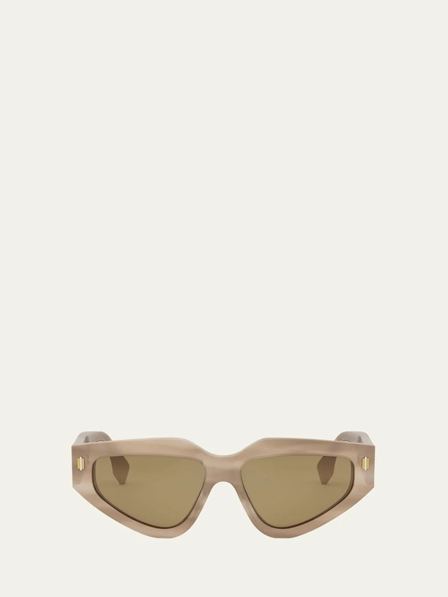Fendi sunglasses in acetate Fendi Roma logo on temples and Pequin detail on front. Eye/bridge/temple (in mm): 36.8-15-145 Eyewear style: Shield Acetate 100% UVA/UVB protection Made in Italy Proposition 65 warning for California residents Online Inquiries: BGS21_D552S| Store Inquiries: #4972645