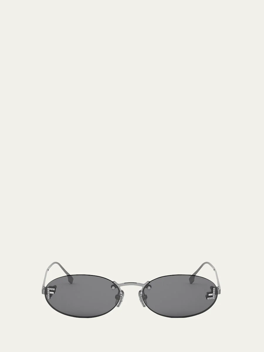 Fendi rimless oval sunglasses in metal FF crystals on the front side of the lenses Lens/bridge/temple (in mm): 54-15-135 Solid-color lenses Adjustable nose pads Thin, tapered arms Hand wash 100% UVA/UVB protection Made in Italy Proposition 65 warning for California residents Online Inquiries: BGS21_D5183| Store Inquiries: #4879288