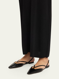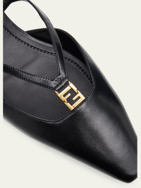 Fendi flats in paneled eel leather with gold-tone FF hardware 1.00 in / 25 mm no heel or flat heel Pointed toe Buckle slingback strap Leather outsole Professional cleaning recommended, spot clean Made in Italy Online Inquiries: BGS21_X6ZNA| Store Inquiries: #5073208