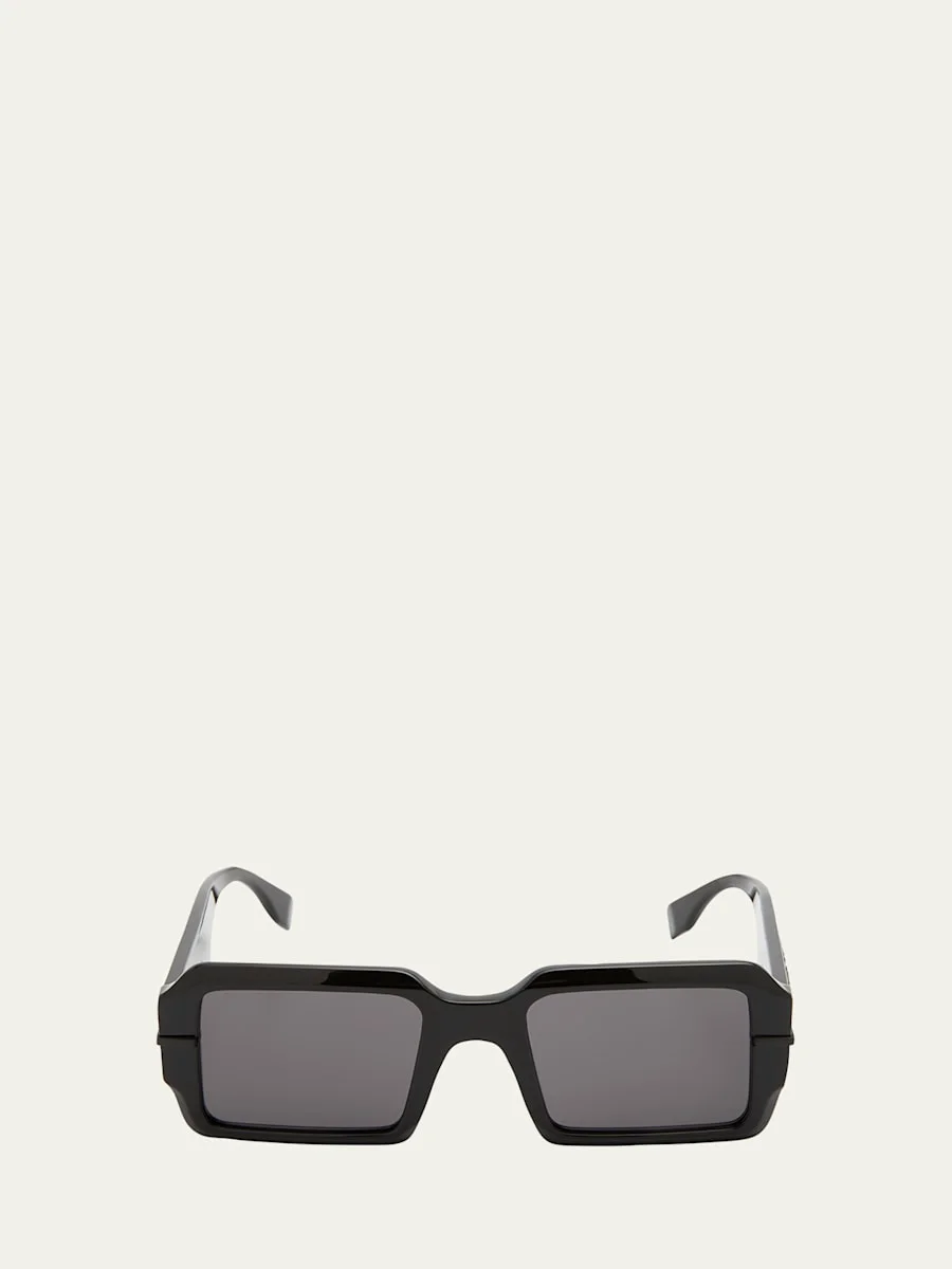 Fendi "FE40073U" rectangle sunglasses feature tonal raised logo at temples Eye/bridge/temple (in mm): 52-21-145 Solid-colored lenses Full-rim frames Saddle nose bridge Thick, tapered arms; curved temple tips Acetate 100% UVA/UVB protection Made in Italy Proposition 65 warning for California residents Online Inquiries: BGS21_NA84J| Store Inquiries: #4414869