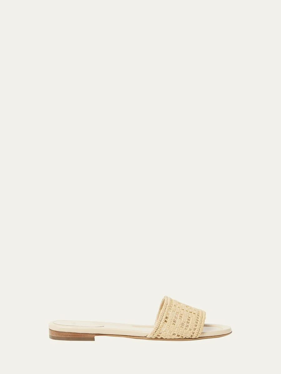 Sunshine FF Raffia Leather Slide Sandals