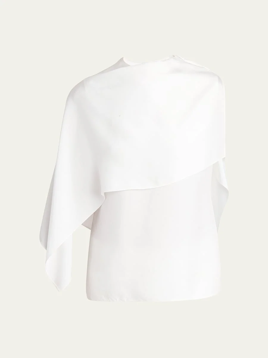 Ferragamo twill top with a cape Round neckline Long sleeve Relaxed fit Cotton/viscose/elastane Made in Italy Model is 5'10"/177cm. Online Inquiries: BGS21_B9G97| Store Inquiries: #4869219