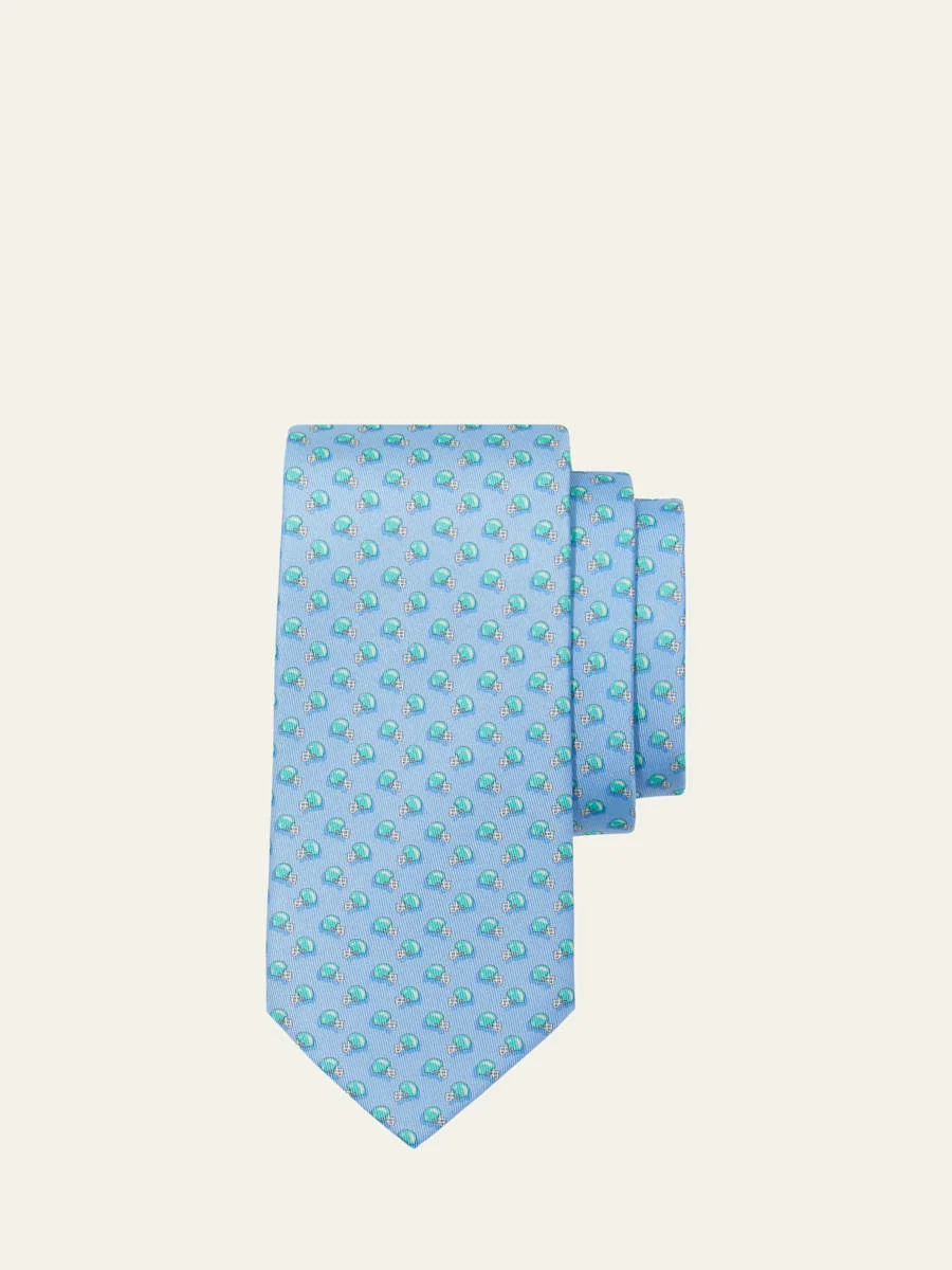 Ferragamo tie in silk featuring a pattern of mini American football helmets Approx. 59.45"L x 3.2"W Self-tie style Silk Made in Italy Online Inquiries: BGS21_NCGEZ| Store Inquiries: #4880316