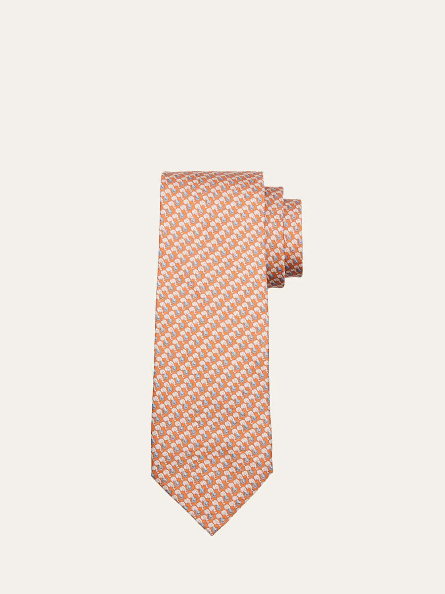 Small elephants showcase the distinctive Gancio motif elegantly hanging from their tusks, adding a playful touch to this Ferragamo tie. Silk/wool/acetate Made in Italy Online Inquiries: BGS21_NCZR6| Store Inquiries: #4984772