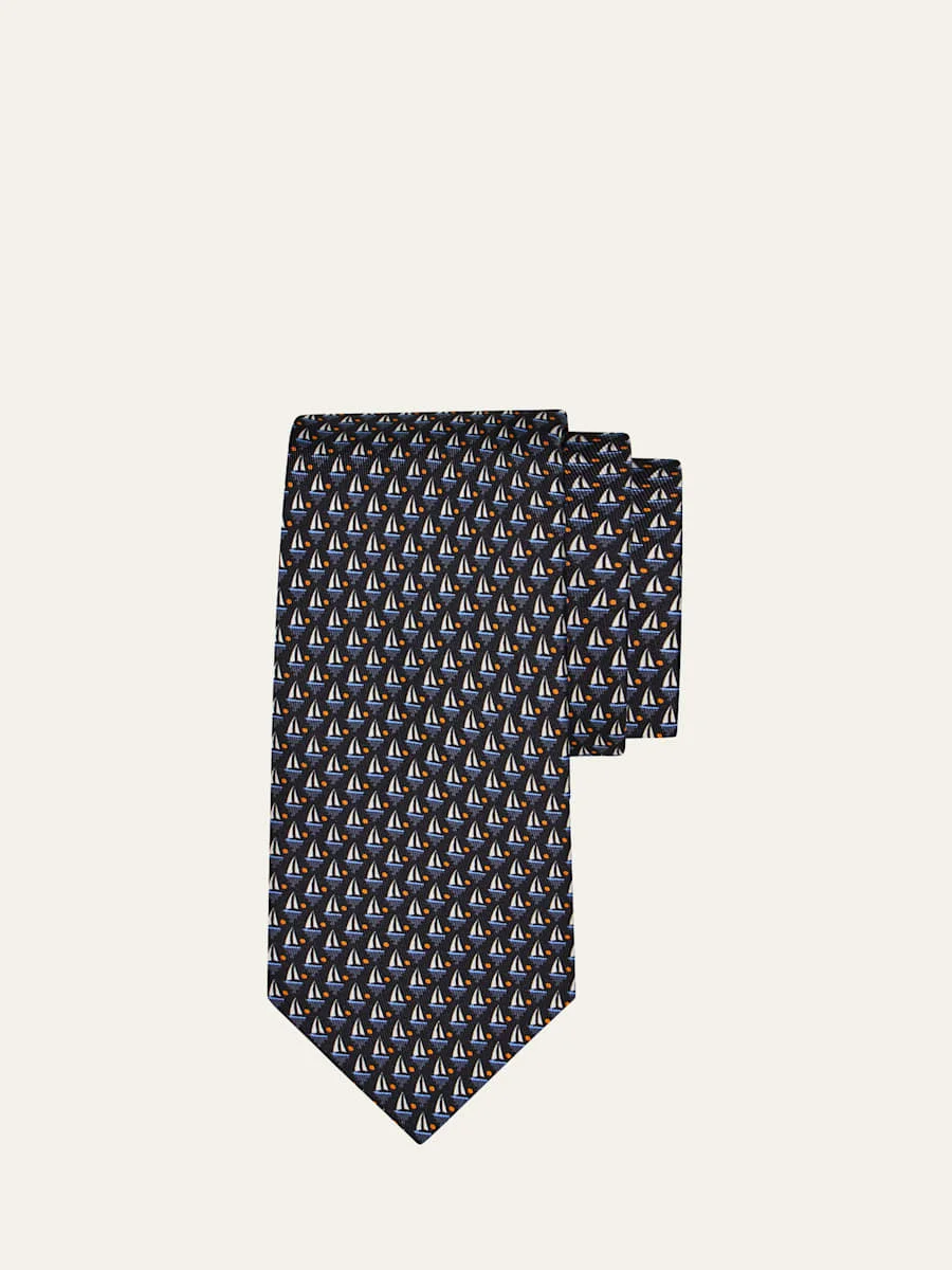 Ferragamo formal tie revealing a sailboat micro-pattern Silk/wool/acetate Online Inquiries: BGS21_NCZQ2| Store Inquiries: #4984734