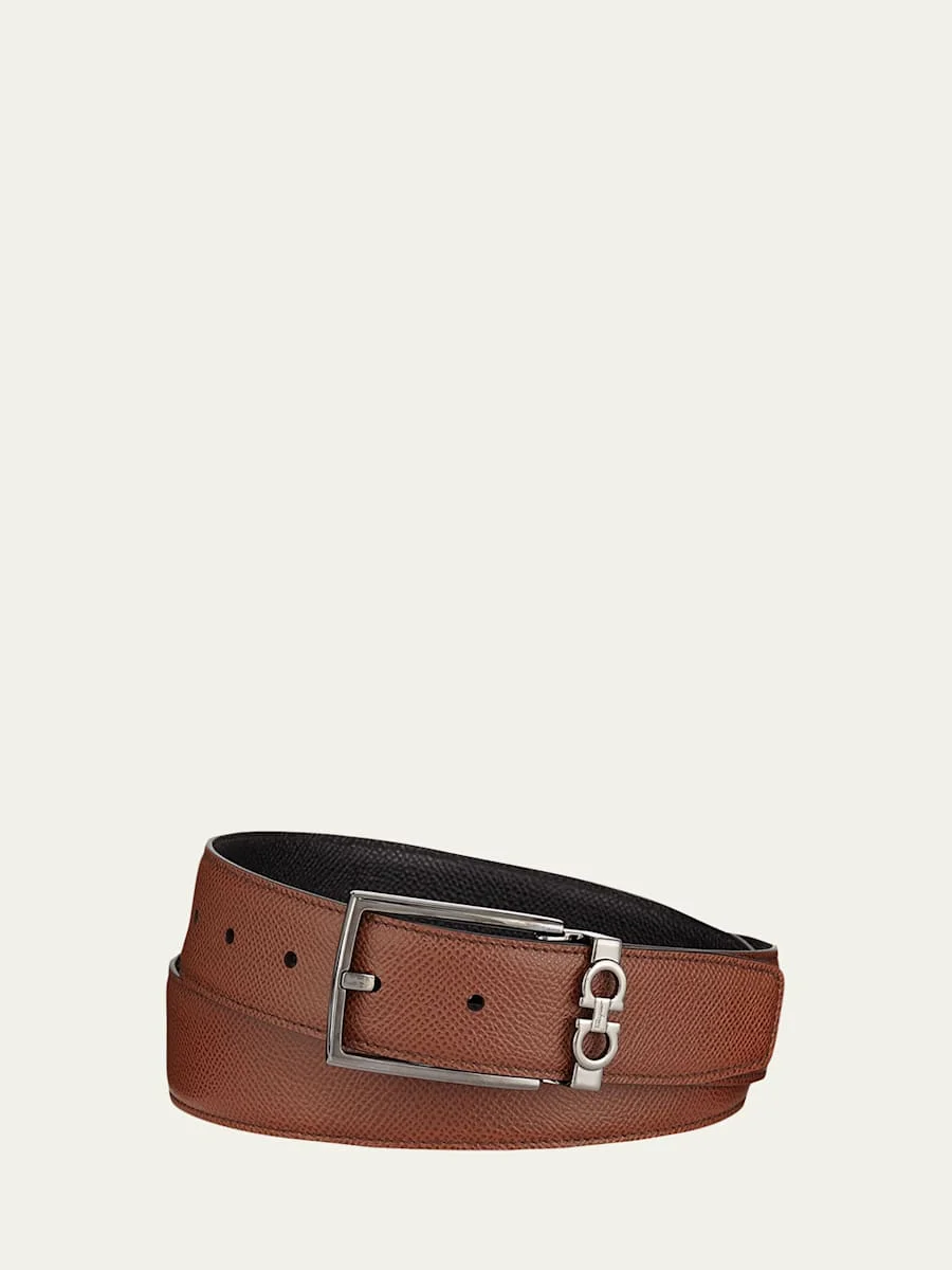 Salvatore Ferragamo belt in textured calfskin leather Approx. 1.5"W Logo-engraved gunmetal square buckle Gancini detail on keeper Adjustable fit Made in Italy Shipping Direct from Vendor, usually ships within 7 business days. Online Inquiries: BGS21_N5PTU| Store Inquiries: #2709879
