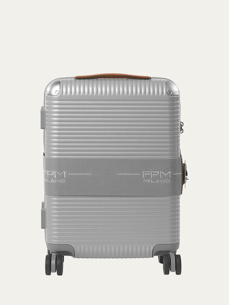 Bank Zip Deluxe was created for lightness and practicality and is distinguished by its zip closure. The elastic band with an embroidered logo closes with the iconic aluminum butterfly lock, the ever-present signature of the brand. Leather handles, aluminum corners, and four dual wheels guarantee easy and effortless movement. Designed by Marc Sadler and features his signature on the bottom Iconic and impact-resistant external wave texture Aluminum-reinforced corners and rivets Telescoping top handle Leather top and side handles Water-resistant external coated zipper TSA-approved combination lock Four dual-spinner wheels Italian leather details Interior nylon compression straps and practical divider Removable soft lining Approx. 18.1"W x 10.6"D x 26.7"T Item Weight (Lbs.): 10.4 Body: Polycarbonate Lining: Polyester Trim: Leather Spot clean Made in Italy Online Inquiries: BGS21_HGG5A| Store Inquiries: #4796811