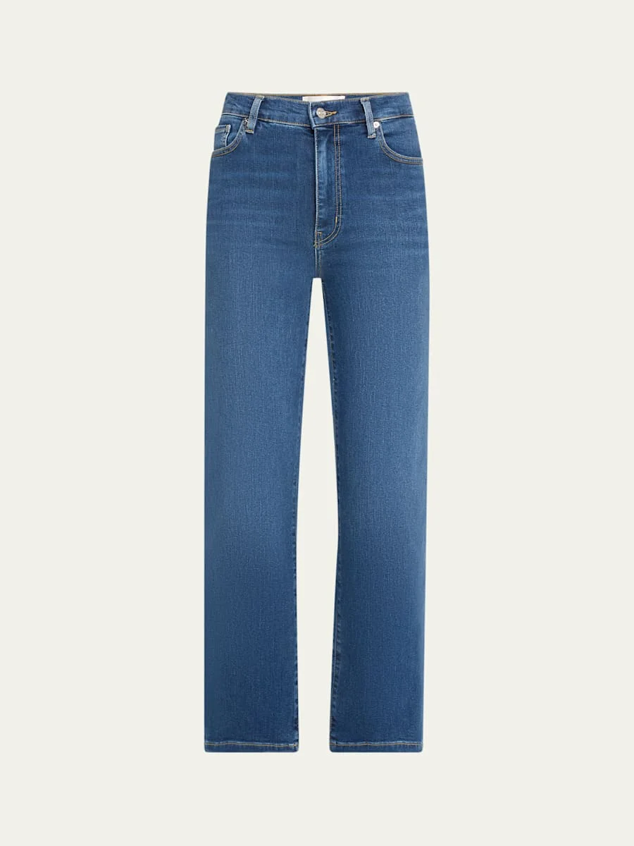 FRAME "Le Sleek Straight" jeans crafted from super stretch denim Approx. measurements: 11.0" rise; 28" inseam High rise sits high on hip Straight legs Five-pocket style Button/zip fly; belt loops Hits at the ankle Cotton/modal/elasterell-p Wash inside out, machine wash warm dry flat Imported Online Inquiries: BGS21_T6HNM| Store Inquiries: #4989880