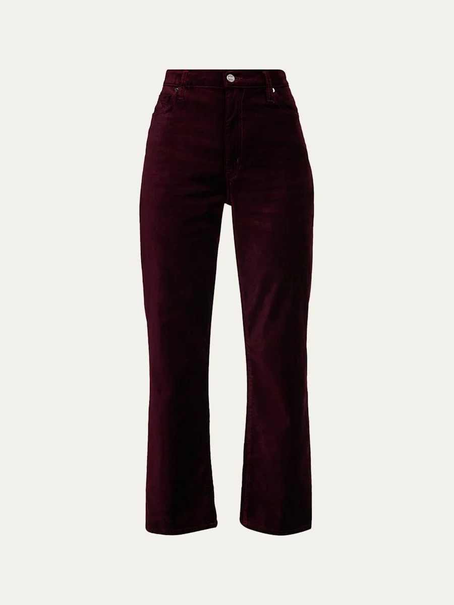 FRAME "Le Sleek Straight" jeans in velvet denim Approx. 11" rise; 28" inseam High rise Fivepocket style Slim fit Ankle length Button/zip fly; belt loops Cotton Dry clean Imported