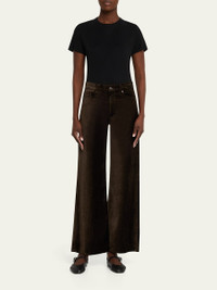 FRAME "Le Slim Palazzo" jeans crafted from velvet denim Approx. 11" rise; 31" inseam High rise Fivepocket style Wide legs Full length Button/zip fly; belt loops Cotton/rayon/cellulose acetate/elastane Machine wash cold, inside out Imported