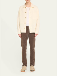 FRAME "L'Homme" pants in a solid stretch fabric Approx. 10” rise; 33” inseam; 14” leg-opening Regular rise Five-pocket style Full length Slim fit through straight legs Button/zip fly; belt loops Lyocell/modal/elasterell-p Machine wash cold, machine wash tumble dry, wash inside out Imported Model is 6'1"/185cm. Online Inquiries: BGS21_N9K9Z| Store Inquiries: #4337967