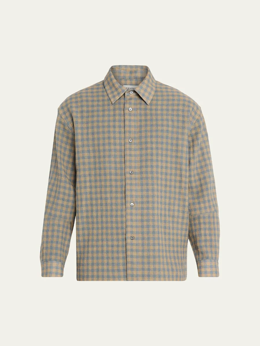 Men's Lightweight Wool Plaid Button-Down Shirt