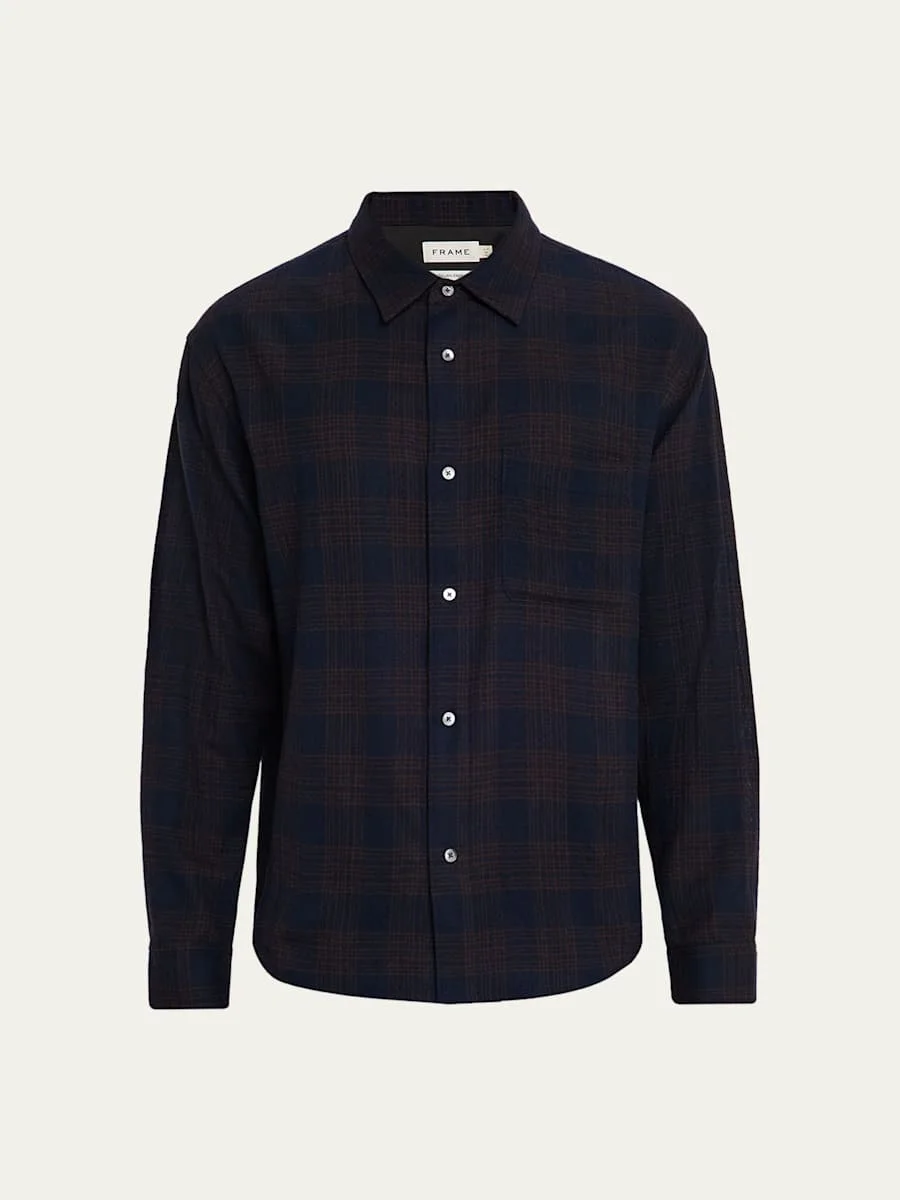 FRAME button-down shirt in premium wool revealed in a classic plaid pattern Point collar Button placket Chest pocket Long sleeves Single-button cuffs Back yoke Curved hem Virgin wool Dry clean Imported Online Inquiries: BGS21_NDFZW| Store Inquiries: #5036817