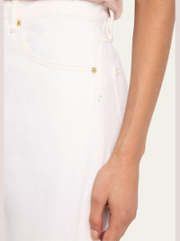 FRAME "The Bubble" jeans in white denim Approx. 12.3" rise High rise Fivepocket style Loose, curved legs Full length Button/zip fly; belt loops Cotton Machine wash cold Imported