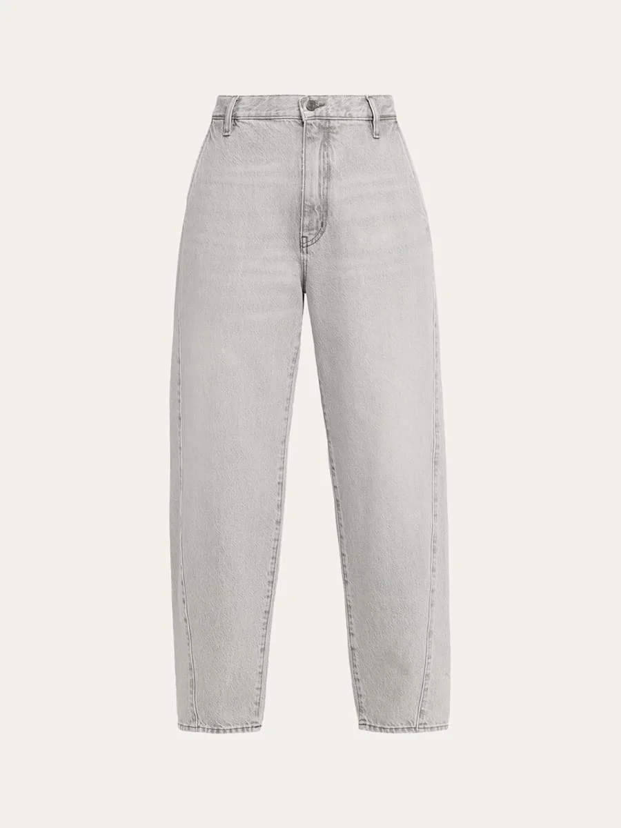 FRAME "Candle" ridid denim trouserstyle pants cut with a curved outseam that finishes at the ankle Approx. measurements: 11.5" rise; 28" inseam Mid rise Fourpocket style Ankle length Straight legs Cotton Machine wash cold Made in USA