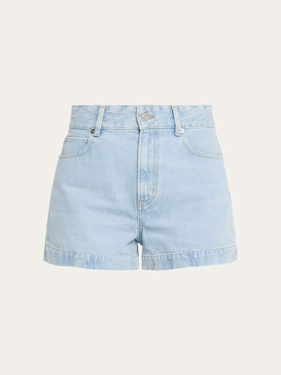 FRAME "The Charm" premium denim shorts finished with a wide hem and side slits for an updated look Approx. 12" rise; 3" inseam High rise Five-pocket style Classic fit Button/zip fly; belt loops Cotton Machine wash inside out Imported Online Inquiries: BGS21_T6TSV| Store Inquiries: #5034133