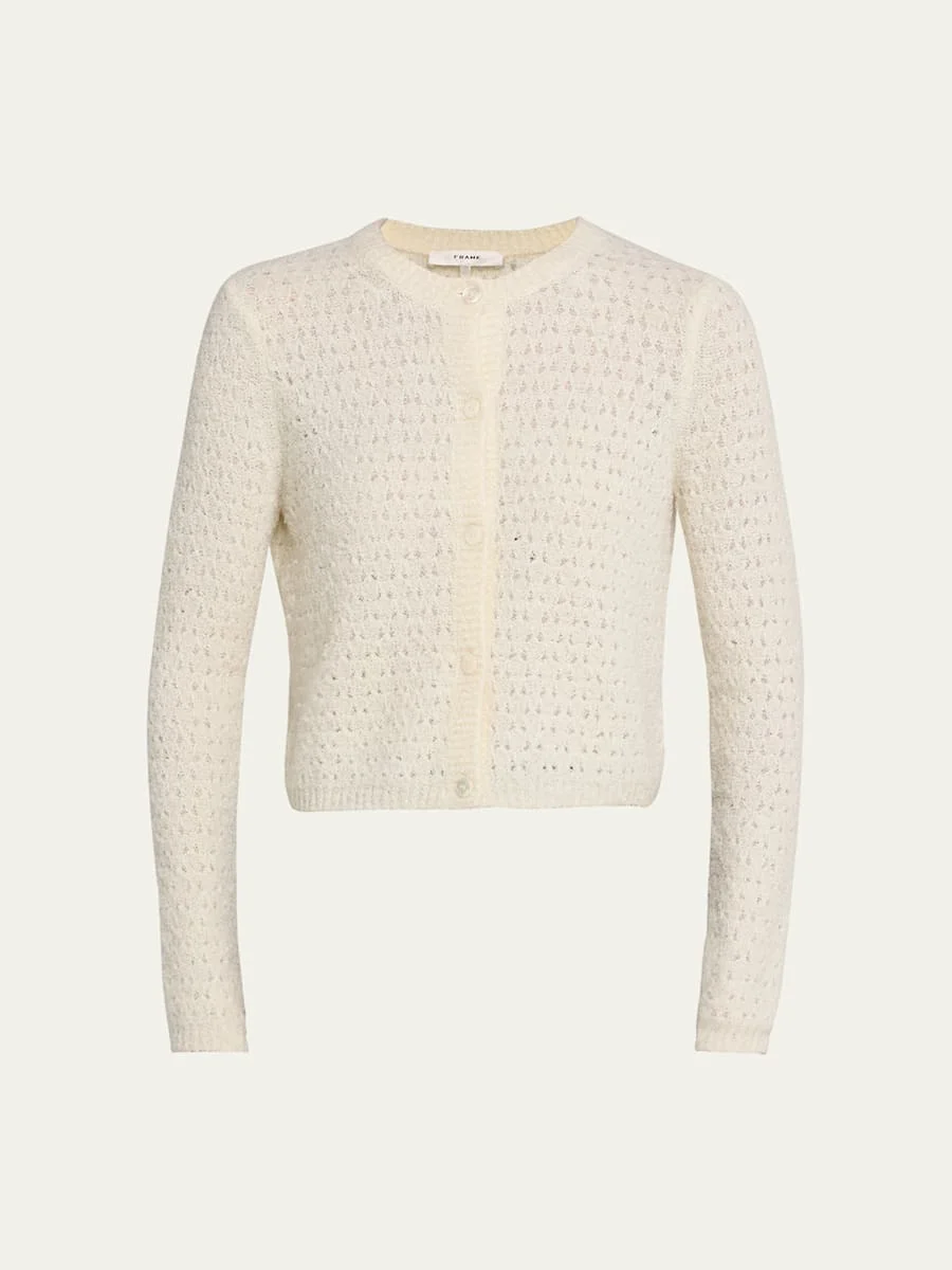 FRAME Chenille cardigan with an openknit effect Crew neckline Long sleeves Classic fit Hem sits at the hip Buttonfront Wool Dry clean Imported