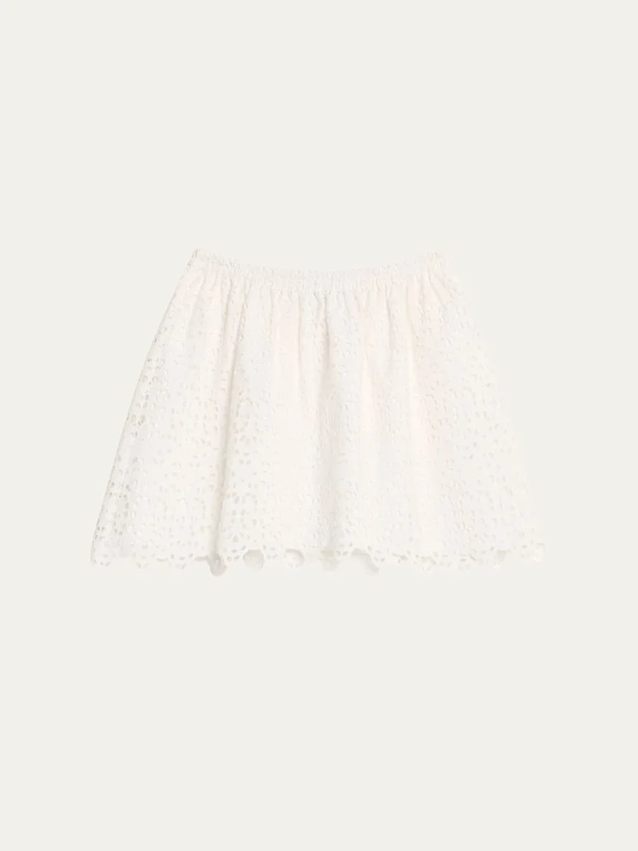 FRAME cotton eyelet skirt High rise Elastic waistband A-line silhouette Hem falls above the knee Pull-on style Cotton Imported Online Inquiries: BGS21_T6Q5B| Store Inquiries: #5023603