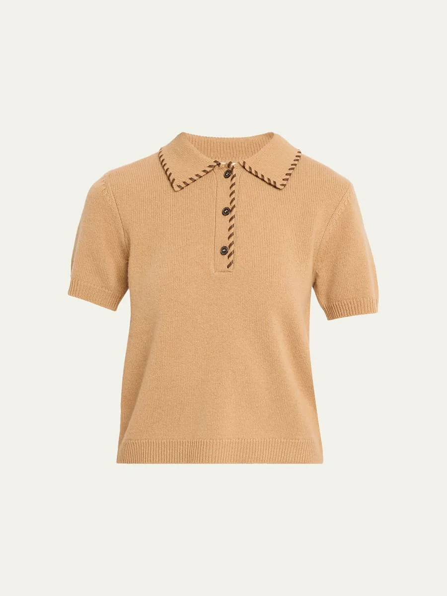 Designed with genuine leather whipstitch detailing, this FRAME polo sweater is crafted from a luxurious cashmerewool blend and offers a refined update to a classic silhouette. Point collar; buttonplacket Short sleeves Classic fit Hem sits at the hip Pullover style Wool/cashmere Dry clean only Imported SIZE amp; FITModel measurements: 5'10" tall Model is wearing a US size 4/Small