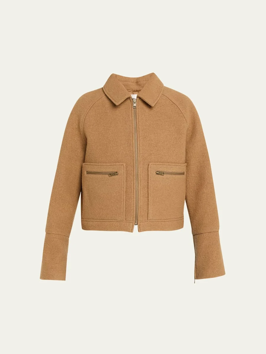 Crafted in virgin wool with a boucle-like texture, this FRAME jacket features a sleek silhouette in a fresh fall hue. Point collar Long raglan sleeves Zip pockets Classic fit Hem sits at the hip Zip-front Wool Dry clean Imported Online Inquiries: BGS21_T6W3B| Store Inquiries: #5048138