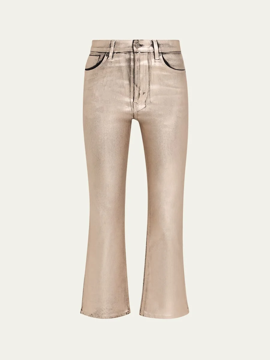 FRAME "The Reboot Crop" jeans in foiled metallic denim Approx. 11" rise; 27" inseam High rise Fivepocket style Fitted through the hip and thigh Cropped length Button/zip fly; belt loops Cotton Imported