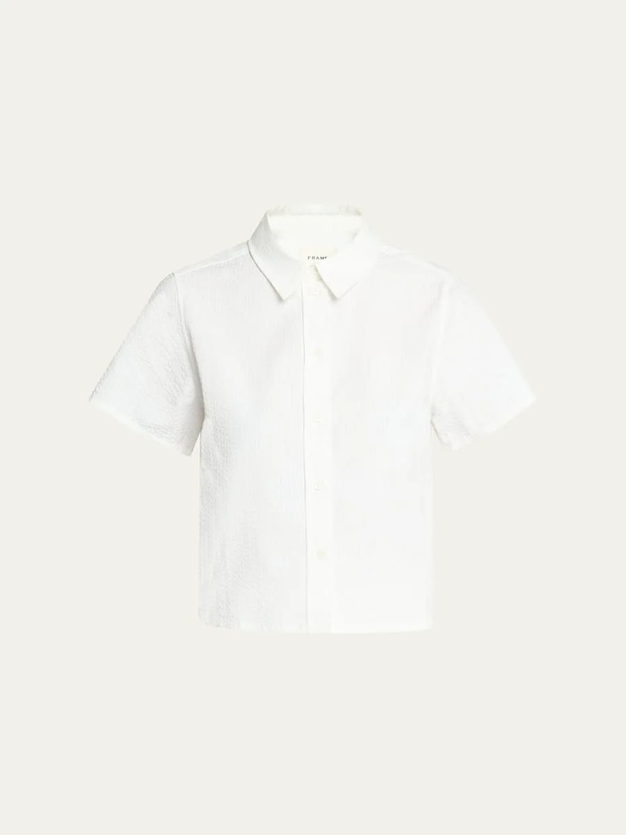 FRAME cotton seersucker top Point collar Short sleeves Classic fit Hem falls to the hip Button-front Cotton Imported Online Inquiries: BGS21_T6Q53| Store Inquiries: #5023593