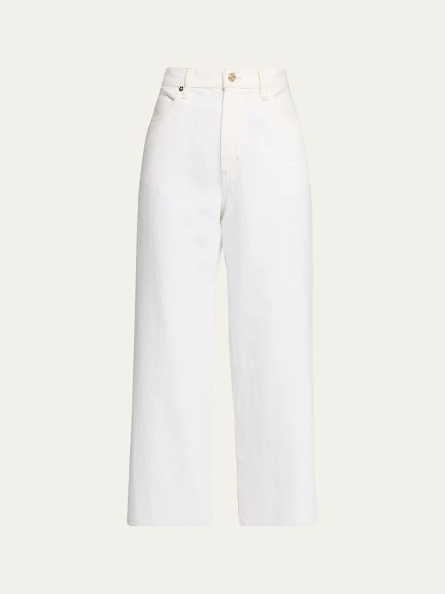 FRAME "The Stroll" wideleg jeans crafted from regenerative cotton denim Approx. 11" rise; 32" inseam Midrise; sits at the hip Fivepocket style Easy fit Full length Button/zip fly; belt loops Cotton Machine wash cold Imported