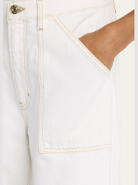 FRAME utility-inspired trousers in crisp white denim Approx. 1 1.5" rise; 27.5" inseam High rise Front and back patch pockets Wide legs Wide cuffed hem; ankle length Button/zip fly; belt loops Cotton Imported Online Inquiries: BGS21_T6TSH| Store Inquiries: #5034121