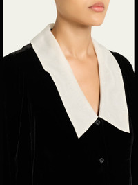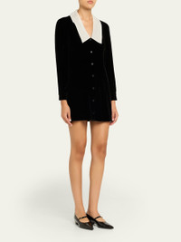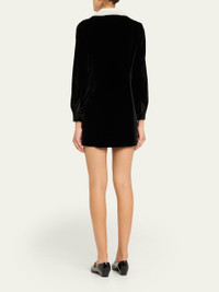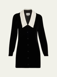 FRAME mini dress crafted in soft velvet with a contrasting sailor collar V neckline Long sleeves with button cuffs Shift silhouette Hem falls above the knee Button-front Rayon/cellulose acetate/silk/spandex Dry clean Imported Online Inquiries: BGS21_T8R85| Store Inquiries: #5363819