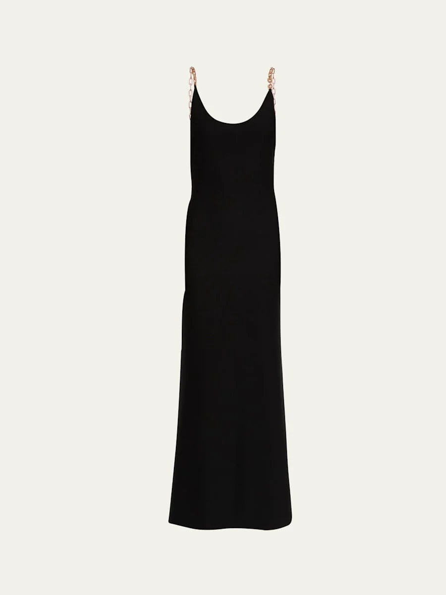 Gabriela Hearst "Adeona" dress features golden chain straps Scoop neckline Sleeveless Full length A-line silhouette Silk Made in Italy Online Inquiries: BGS21_B9WGX| Store Inquiries: #4987467