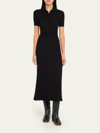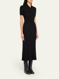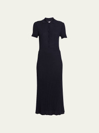 Gabriela Hearst "Amor" rib-knit polo dress Spread collar; half-button front Short sleeves Cinched waist A-line silhouette Full length Slipover style Cashmere/silk Imported Model is 5'10"/177cm. Online Inquiries: BGS21_B7YYD| Store Inquiries: #4433477
