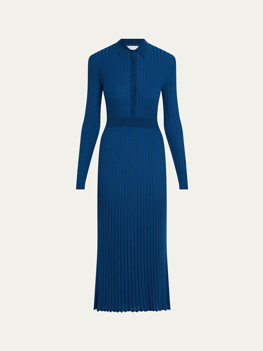 Ardor Cashmere Pleated Knit Midi Polo Dress