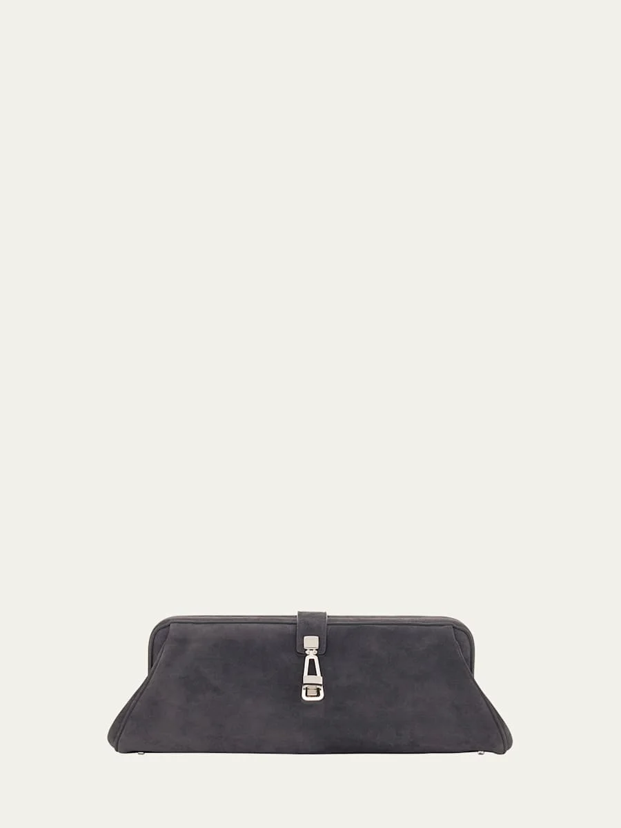 Paola Clutch in Dark Grey Suede