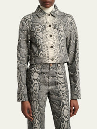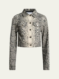 Bronte Snakeskin-Print Crop Denim Jacket