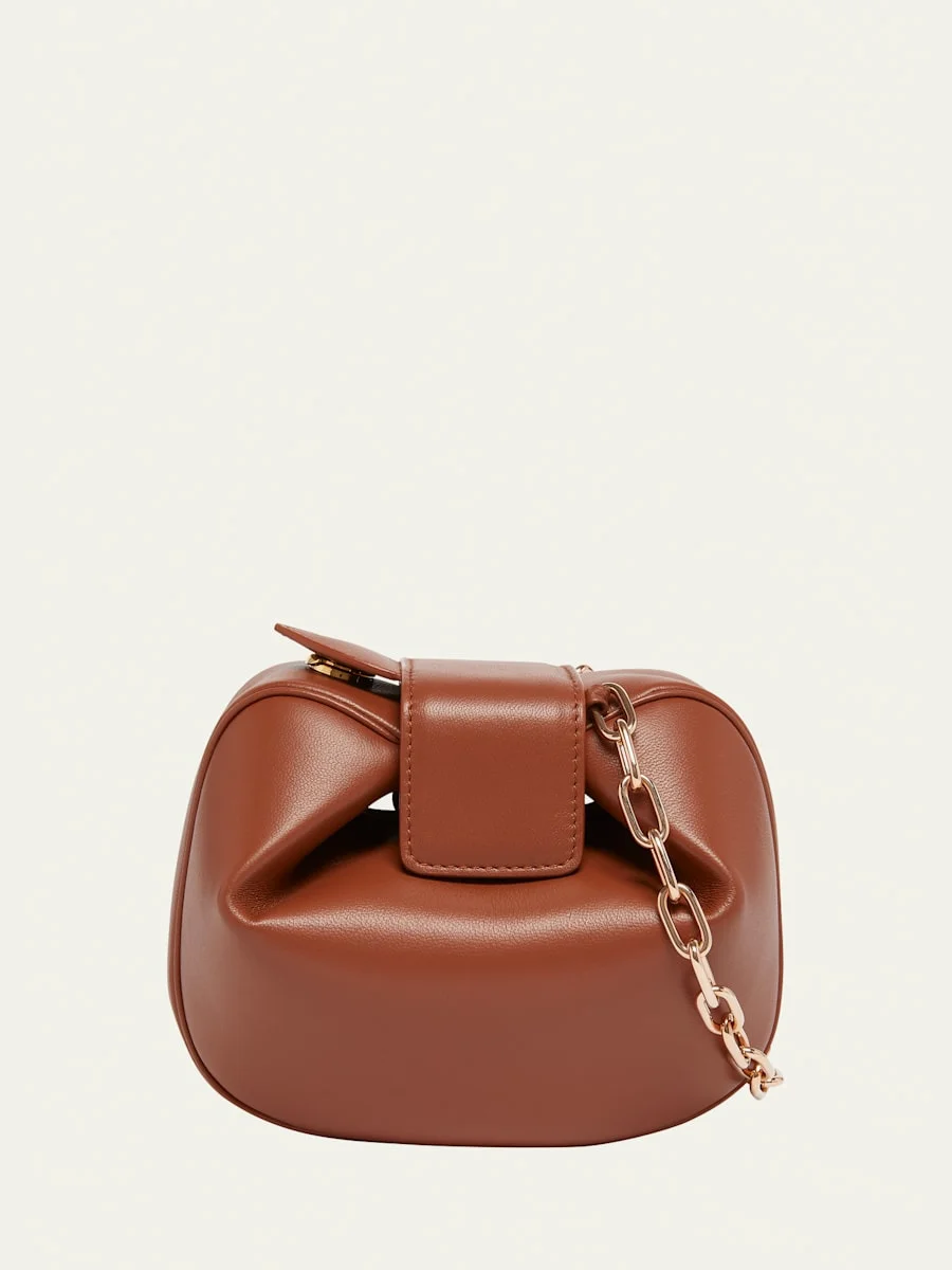 Soft Demi Clutch with Chain in Cognac Nappa Leather