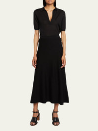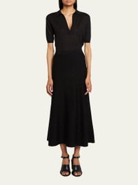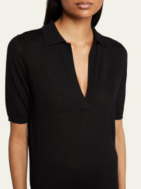 Gabriela Hearst "Frank" polo top in cashmere Spread collar; v-neckline Short sleeves Ribbed trim Hip length Pullover style Semi-fitted Cashmere/silk Made in Italy Proposition 65 warning for California residents Model is 5'10"/177cm. Online Inquiries: BGS21_B7YYC| Store Inquiries: #4433476