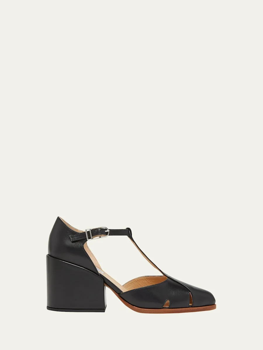 Hawes Leather T-Strap Block-Heel Pumps