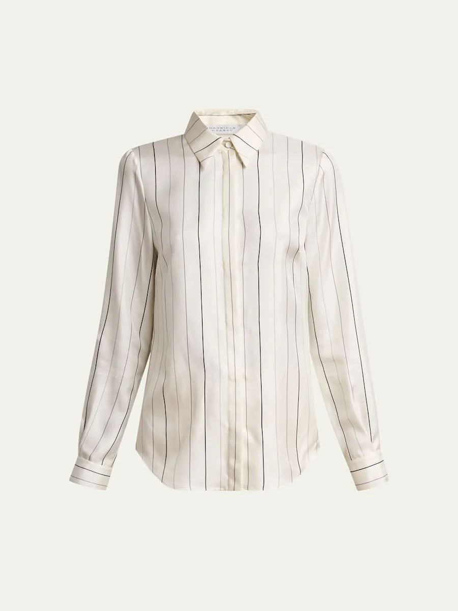 Henri Pinstripe Silk Button-Down Blouse
