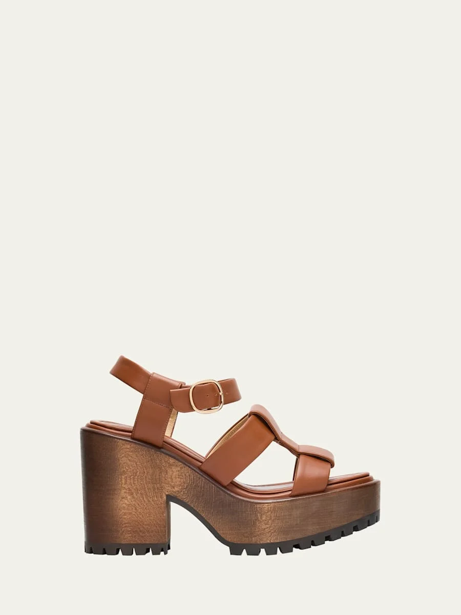 Gabriela Hearst "Hera" platform leather sandals 4.33 in / 110 mm block heel Open toe Caged vamp Adjustable ankle strap Rubber outsole Lining: Unlined Made in Italy Online Inquiries: BGS21_X6X9J| Store Inquiries: #5033262