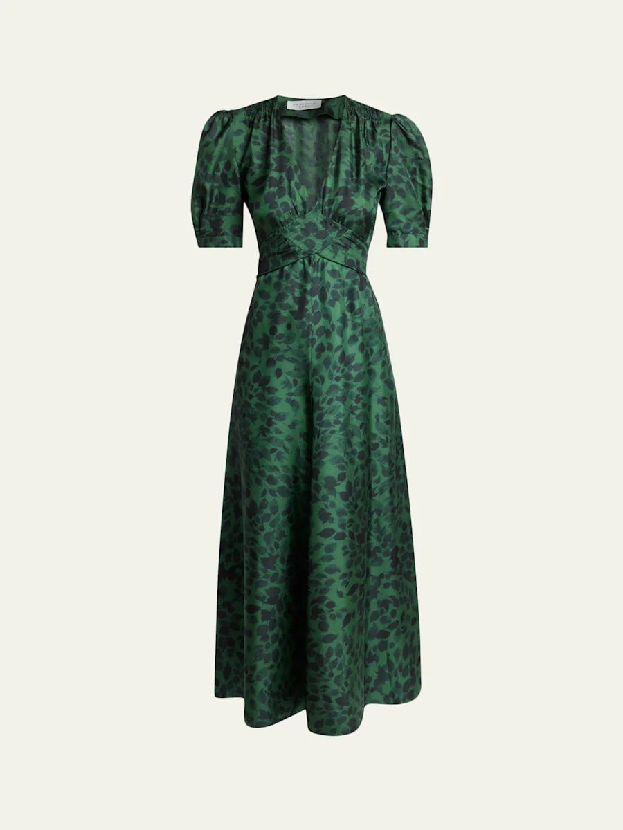 Larkin Printed Satin Puff-Sleeve Midi Dress
