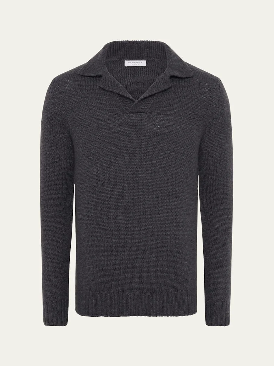 Aled Knit Polo in Charcoal Cashmere