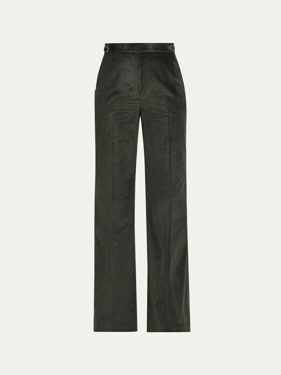 Gabriela Hearst "Vesta" corduroy pants, complete with signature hardware detail at either side of the waist Fitted waistband High rise Two front pockets Two back welt pockets Full length Straight legs Hookandbar; zip fly Cotton Made in Italy