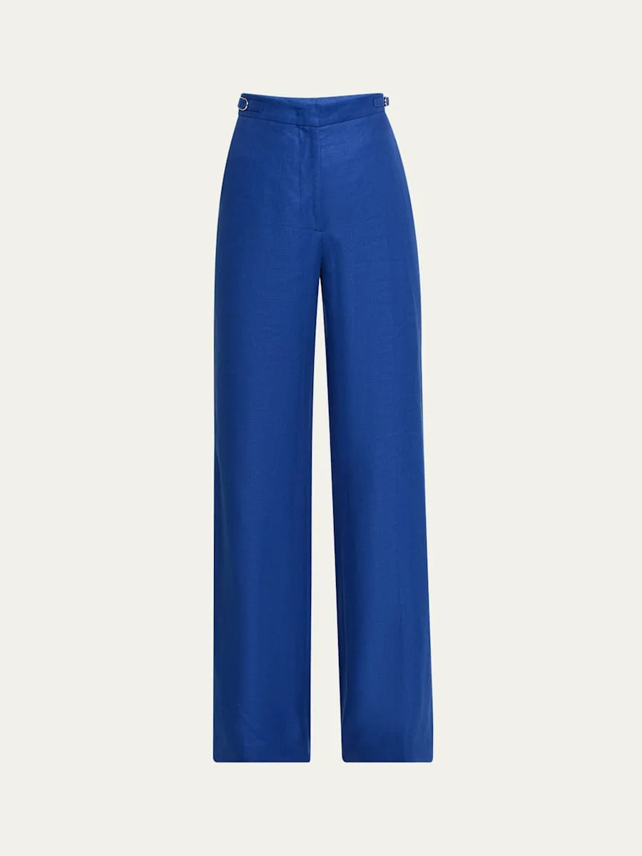 Gabriela Hearst "Vesta" pants featuring hip buckle details High rise Flat front Side slip pockets; back welt pockets Wide legs Full length Hook/zip fly Linen Made in Italy Online Inquiries: BGS21_BA7J1| Store Inquiries: #5046620