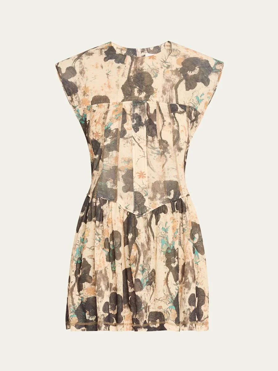 Ganni printed mesh mini dress featuring a corset-style bodice Crew neckline Cap sleeves A-line silhouette Hem falls above the knee Invisible back zip Polyester Machine wash cold Imported Online Inquiries: BGS21_T6EUT| Store Inquiries: #4971961