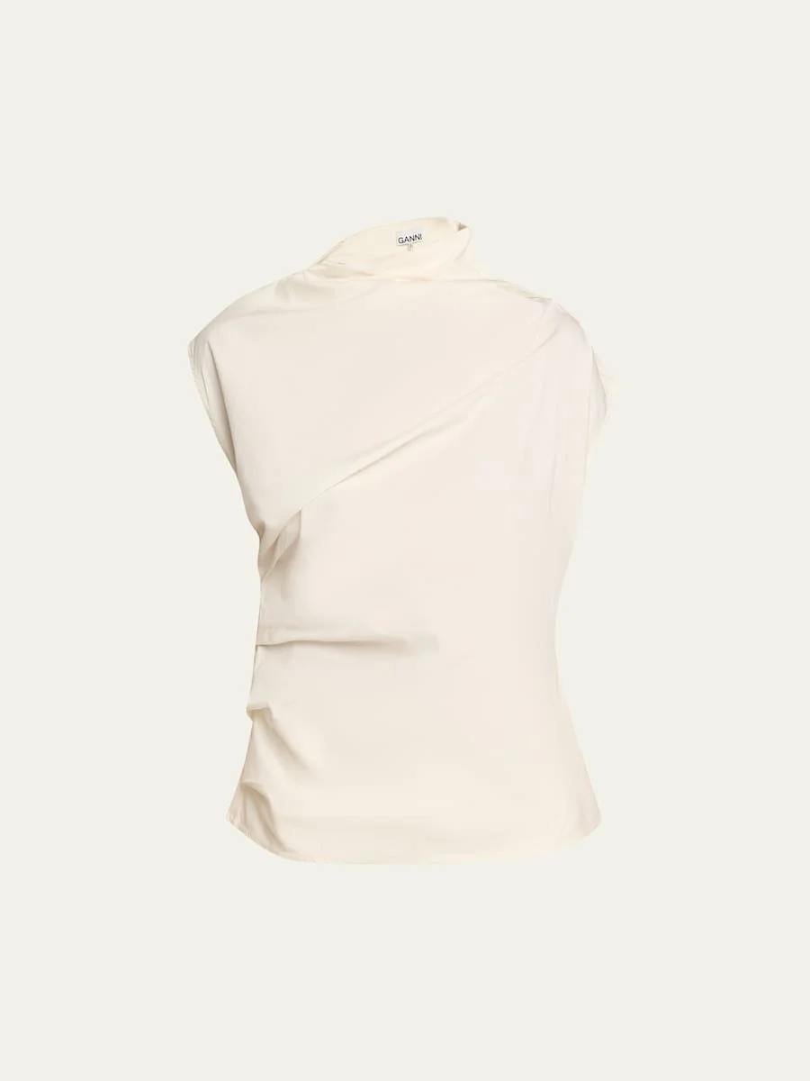 Crafted from organic cotton, this Ganni blouse exhibits flattering ruching and a twisted, cut-out back. Asymmetric neckline Sleeveless Slim fit Hem sits at the hip Side zip Cotton/elastane Machine wash cold Imported Online Inquiries: BGS21_T7PMJ| Store Inquiries: #5187992