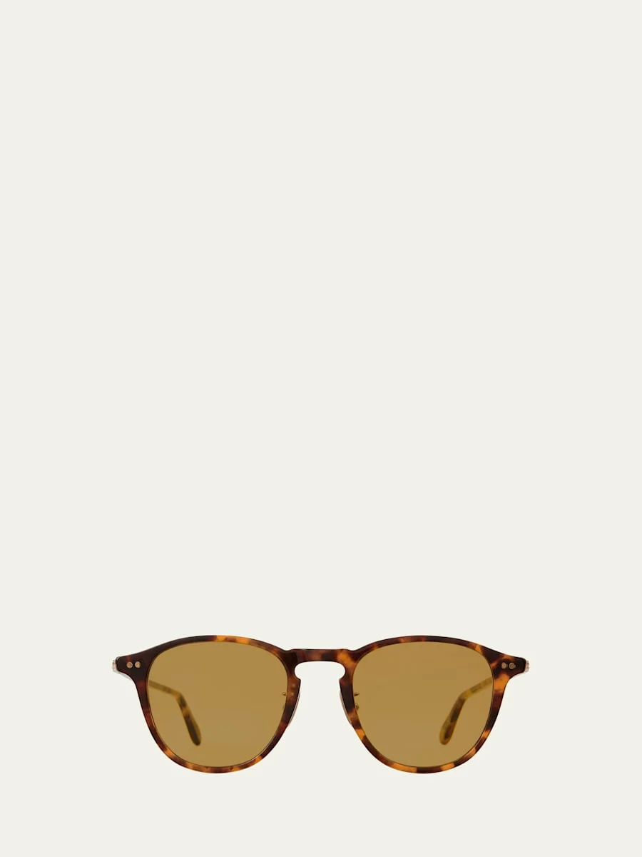 Garrett Leight "Hampton J Sun" round sunglasses meticulously crafted in Japan with exclusive acetate colors and luxurious metal accents Lens/bridge/temple (in mm): 47-22-145 Features fern filigree end pieces and corewire Premium glass lenses Keyhole nose bridge Adjustable titanium nose pads for a perfect fit Thin, tapered arms Exposed metal corewire Custom cloud decal temple tips Rayon/cellulose acetate/titanium 100% UVA/UVB protection Made in Japan Online Inquiries: BGS21_ND39G| Store Inquiries: #5015214