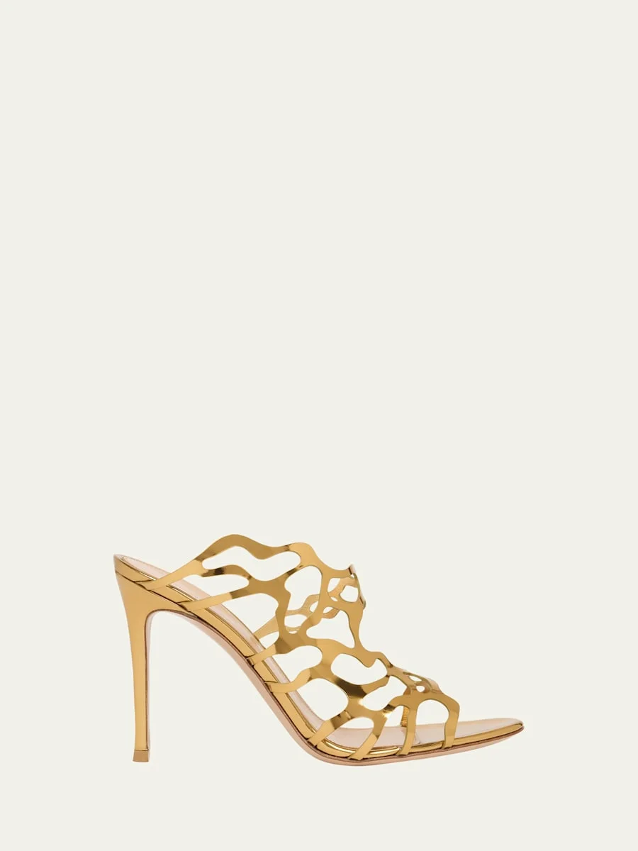 95mm Cutout Metallic Leather Mule Sandals