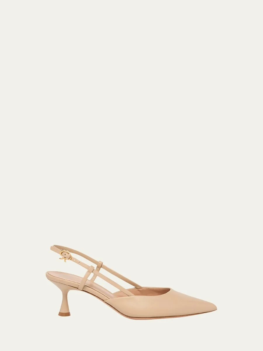 Gianvito Rossi "Vitello" mules in calf leather 2.25 in / 55 mm spool heel Pointed toe Adjustable slingback strap Leather outsole Made in Italy Online Inquiries: BGS21_X60BB| Store Inquiries: #4457884