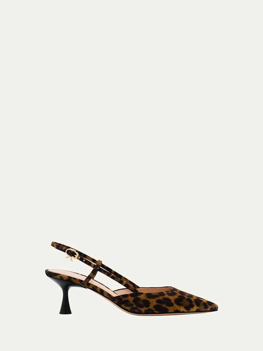 Gianvito Rossi "Ascent" pumps in printed calfskin 2.25 in / 55 mm spool heel Pointed toe Adjustable slingback strap Leather lining and outsole Made in Italy